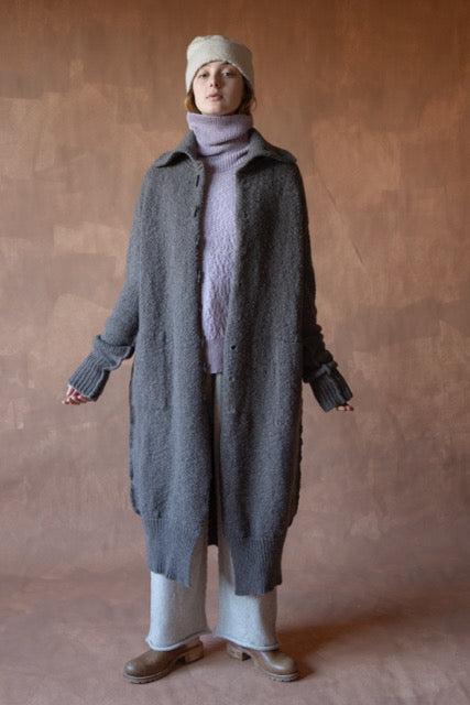 long chunky buttoned knit coat